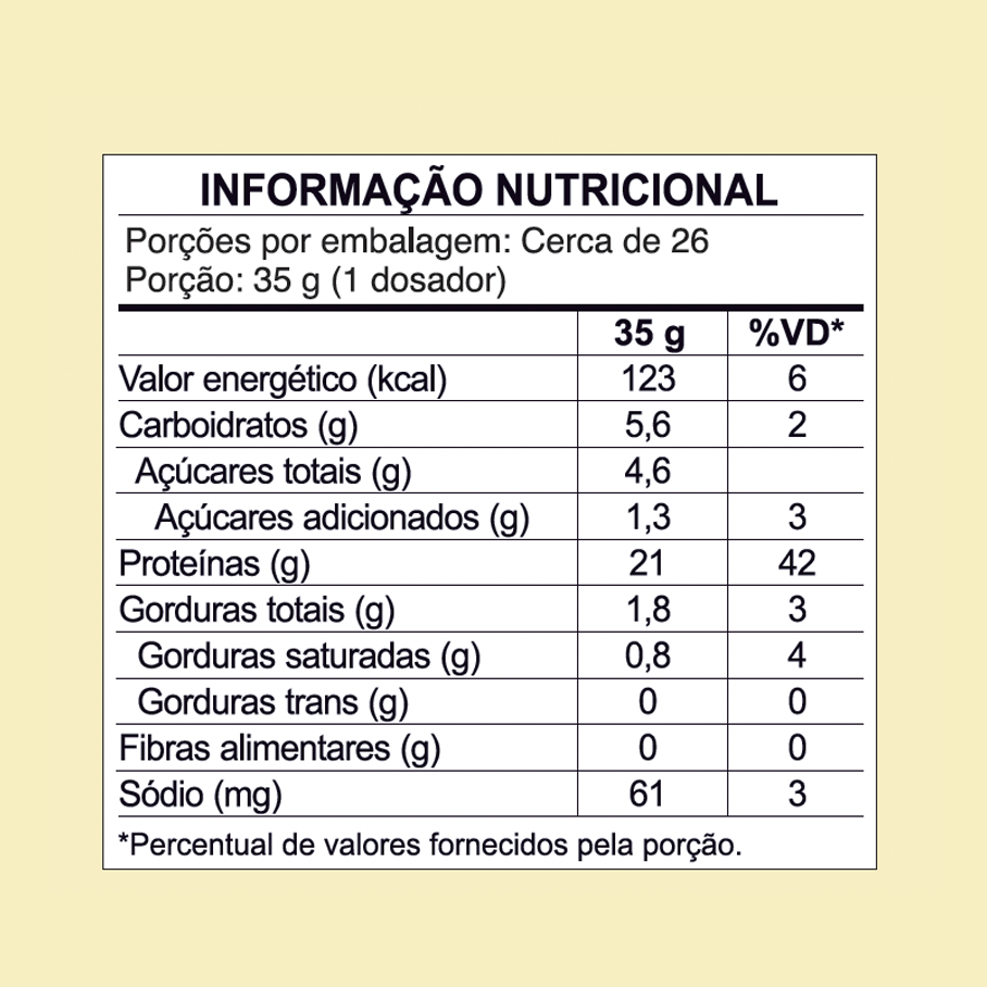 RECOMENDAÇÃO DE USO: Ingerir 1 dose (35g) após o treino ou durante as refeições para completar sua necessidade proteica.
